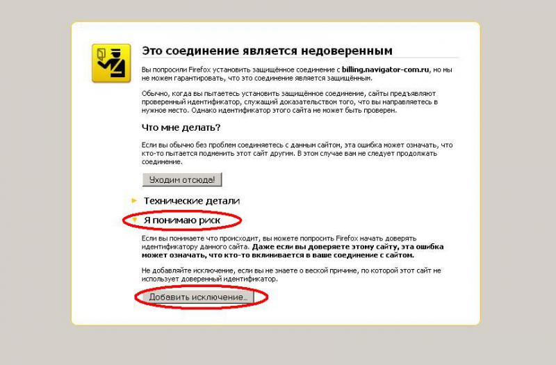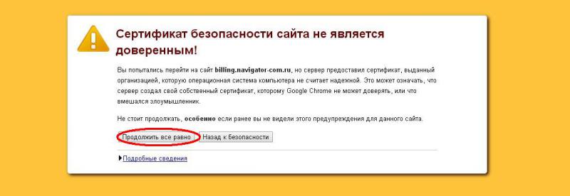 При попытке зайти в личный кабинет, в зависимости от Вашего браузера, может появляться предупреждение о сертификате безопасности: